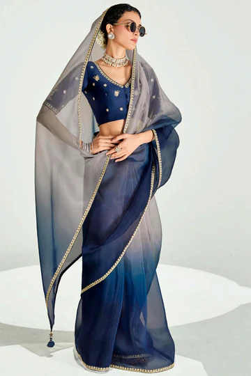 Women who desire a light but exquisite drape also like the organza saree. Because it is semi-transparent, it may be used for both simple and elaborately embroidered motifs, providing buyers with a lot of options to choose from. This saree flows easily and looks well with fancy blouses, which makes it a nice mix of subtlety and glamour. A lot of ladies also like how easy it is to style and carry an organza saree compared to heavier silks or brocades, especially when they have to wear it for a long time. This saree is a classic piece of clothing that may be worn to every occasion, from holidays to family get-togethers to formal events.